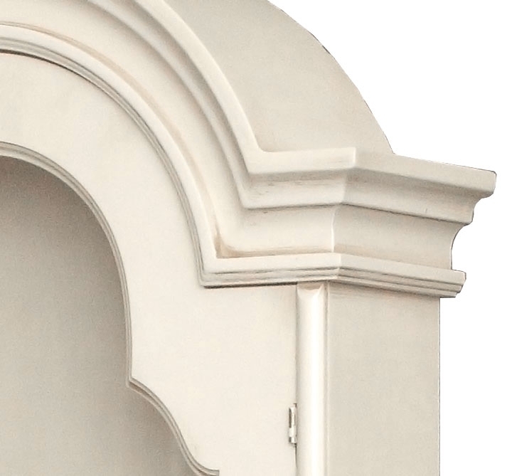 L'alzatina ha l'anta sagomata e permette la funzione di vetrinetta grazie a due piccoli ripiani.