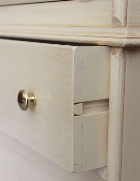 Trumeau comodi e solidi cassettoni lavorati a coda di rondine offrono una grande capienza.