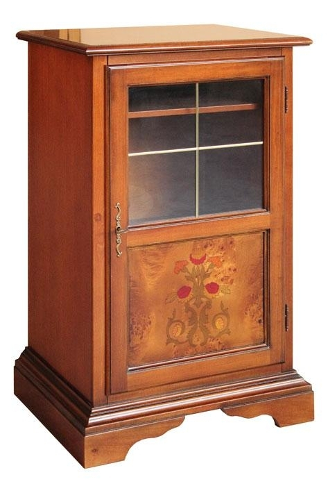 Elegante dalla solida struttura è realizzato con materiali di ottima qualità: Legno di toulipier massello e pannelli di noce tanganica; intarsio floreale molto delicato sulla parte principale dell'anta.