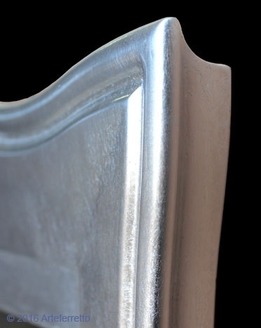 Composizione ingresso consolle e specchio completamente rifinita in foglia argento lucido.