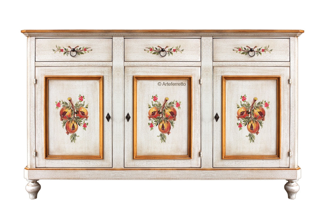 Tre comodi cassetti completano ed esaltano la funzionalità di questa bella credenza decorata.