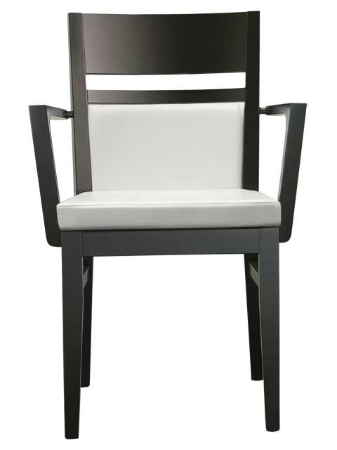 Robusta sedia con braccioli tappezzata sia sulla seduta che sullo schienale.