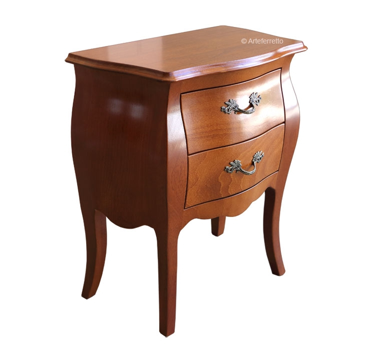 Comodino bombato di forma classica, qui presentato in una versione particolarmente accurata.