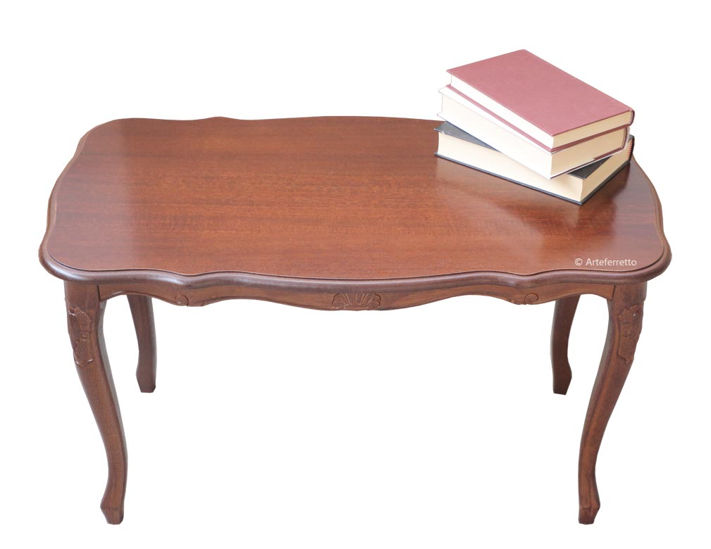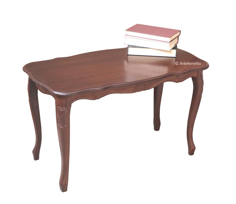 Questo tavolino rettangolare, in legno, di forma classica, è particolarmente adatto ad ambienti ove siano presenti mobili o complementi in stile, ma grazie alla sua linea semplice ed elegante può facilmente integrarsi anche con stili d'arredo diversi da quello classico.