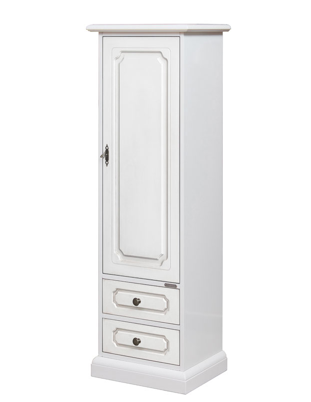 Armadio bianco salva spazio con 1 anta e 2 cassetti.