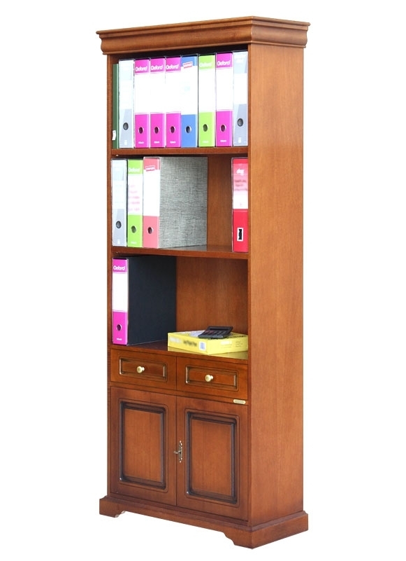 Il vano superiore misura ben 116 cm e può essere ripartito secondo le proprie necessità con due solidi ripiani posizionabili in diverse posizioni a seconda dell'altezza del vano desiderata. È possibile ottenere 3 vani tutti sufficientemente alti per contenere i tradizionali raccoglitori per ufficio. Questa libreria diventa, quindi, una perfetta soluzione di stile e funzionalità anche per gli uffici arredati in stile classico.