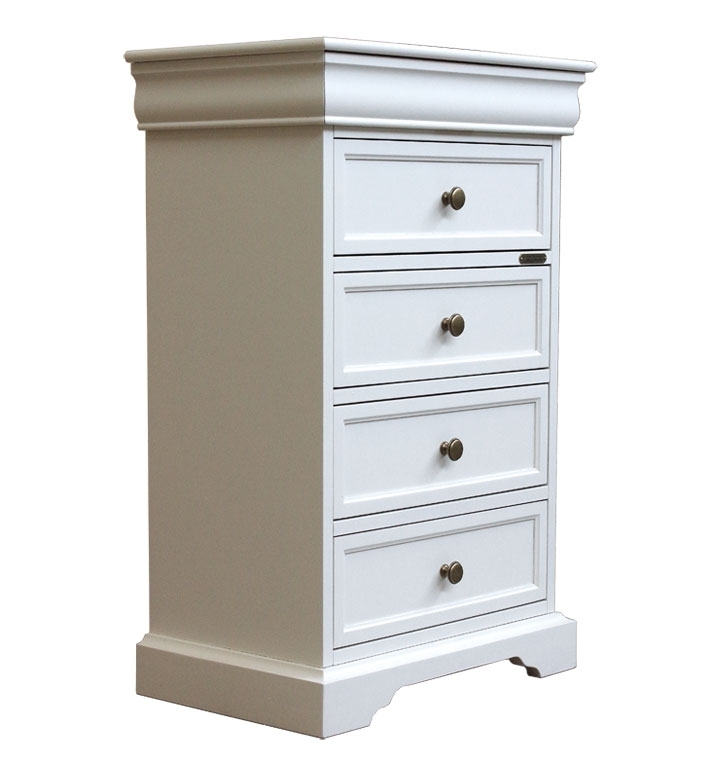 Cassettiera con 5 cassetti in stile Luigi Filippo. La classica linea di questo stile ben si adatta ad una cassettiera che ottimizza tutto il volume occupato.