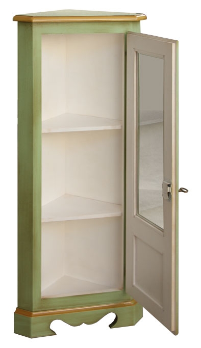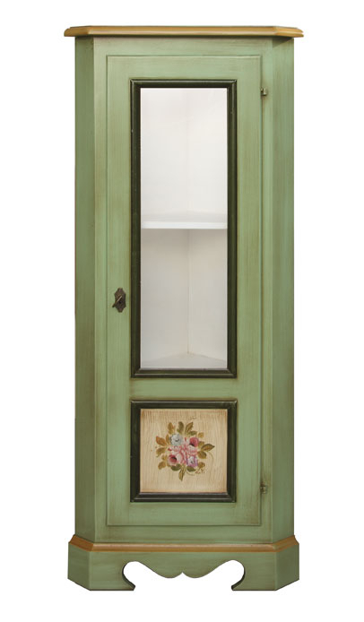 Poi, scendendo, apprezzi la particolare sagoma dell'anta che, ripresa la curva della parte superiore, scende lasciando ampia visibilità all'interno, impreziosito da ripiani in legno o cristallo, dal fondo in tinta o tappezzato con splendido, ma allo stesso tempo discreto, tessuto.