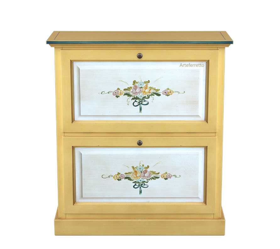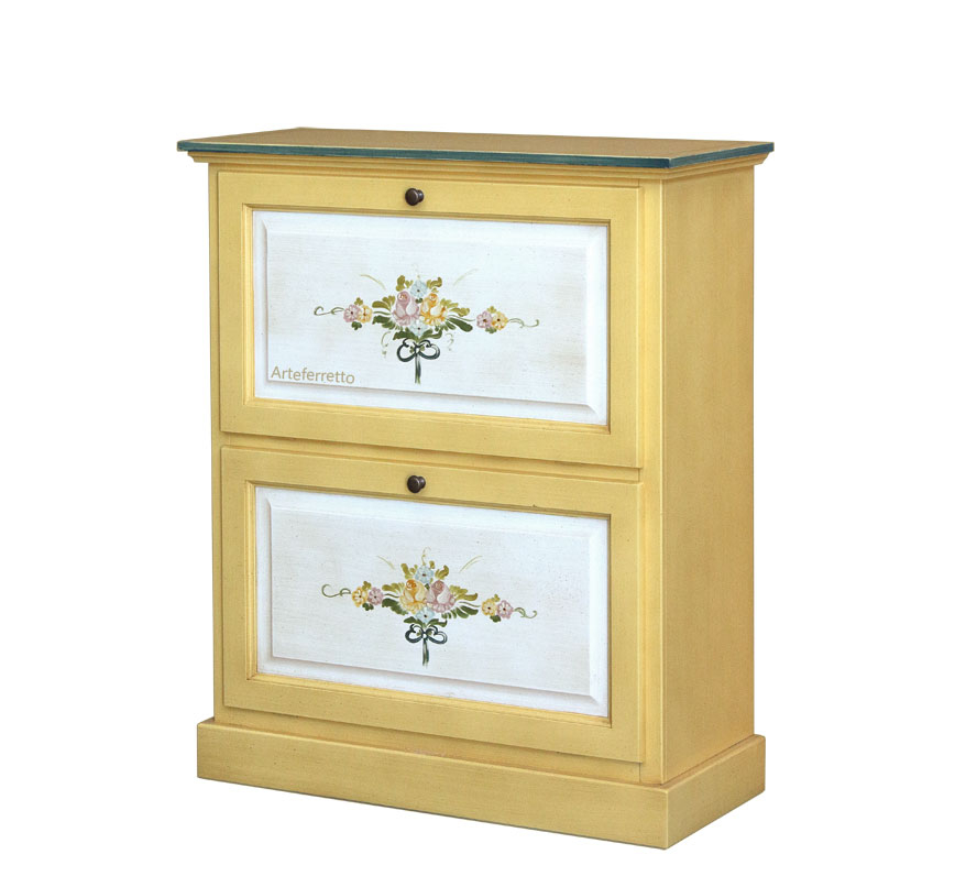 Pratica e raffinata scarpiera decorata con 2 ante a ribalta.