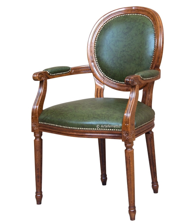 Comodi braccioli, anch'essi con imbottitura, garantiscono adeguata comodità di seduta per questa poltroncina che in ogni ambiente saprà catturare l'attenzione con la sua classica bellezza.