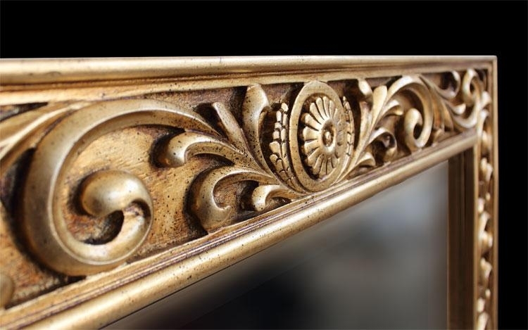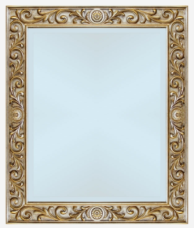 Specchiera rettangolare con finitura in foglia oro o foglia argento applicata manualmente alla cornice.