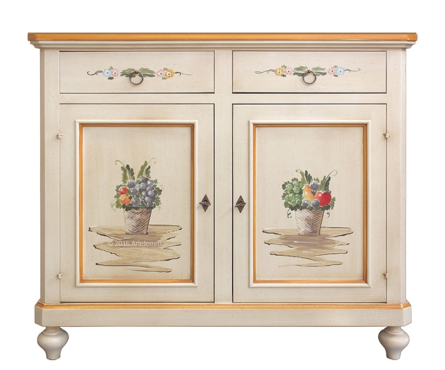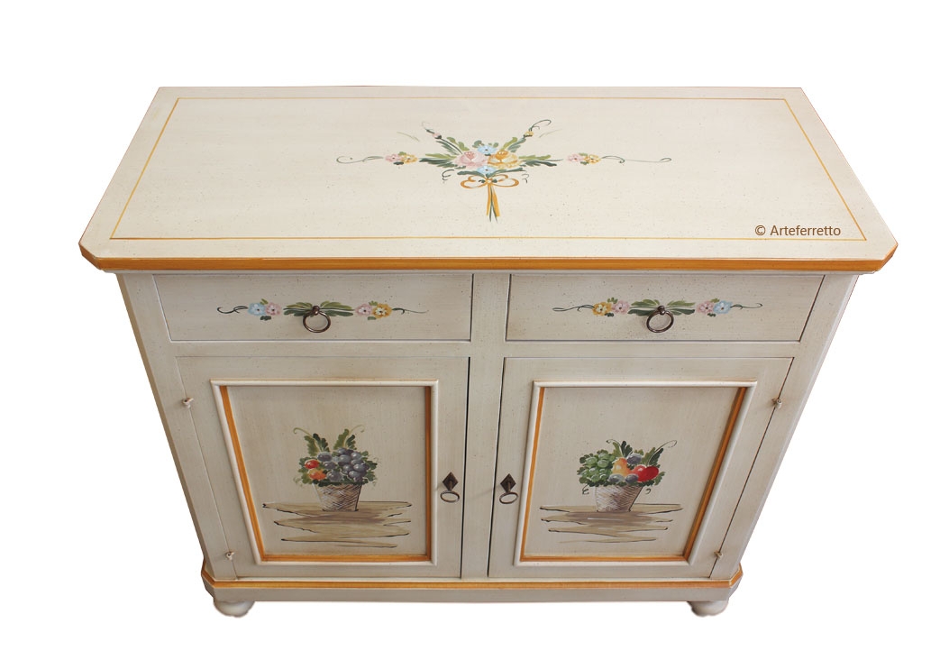 Credenza decorata a mano da esperti artigiani veneti, così come la struttura in legno è stata creata da artigiani con anni di esperienza.