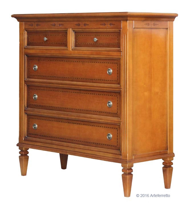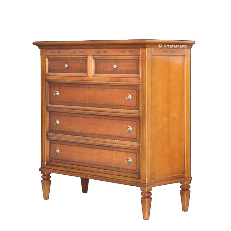 Imponente comò a 5 cassetti, classico e funzionale.