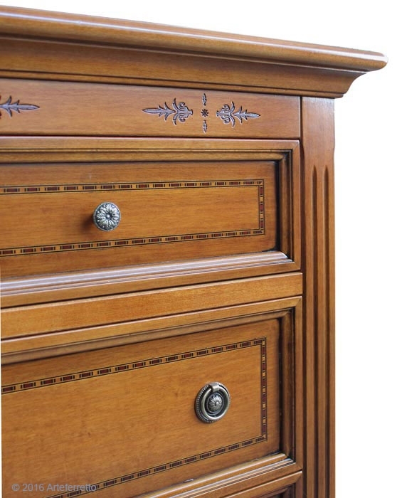 Materiali pregiati, intarsio raffinato e linea elegante sono le caratteristiche di questo mobile, che rende unico l'ambiente in cui viene collocato.