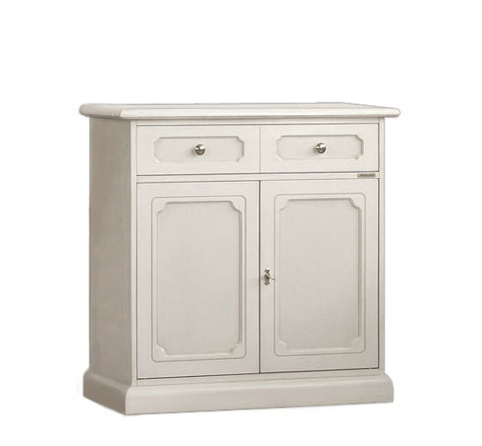 Mobile classico dalla struttura decisamente robusta ed estrema funzionalità favorita da un capace ripiano interno reglabile in diverse altezze e un grande cassetto (all'apparenza sembrano due, ma si tratta di un effetto dato da una particolare lavorazione della facciata del cassetto).
