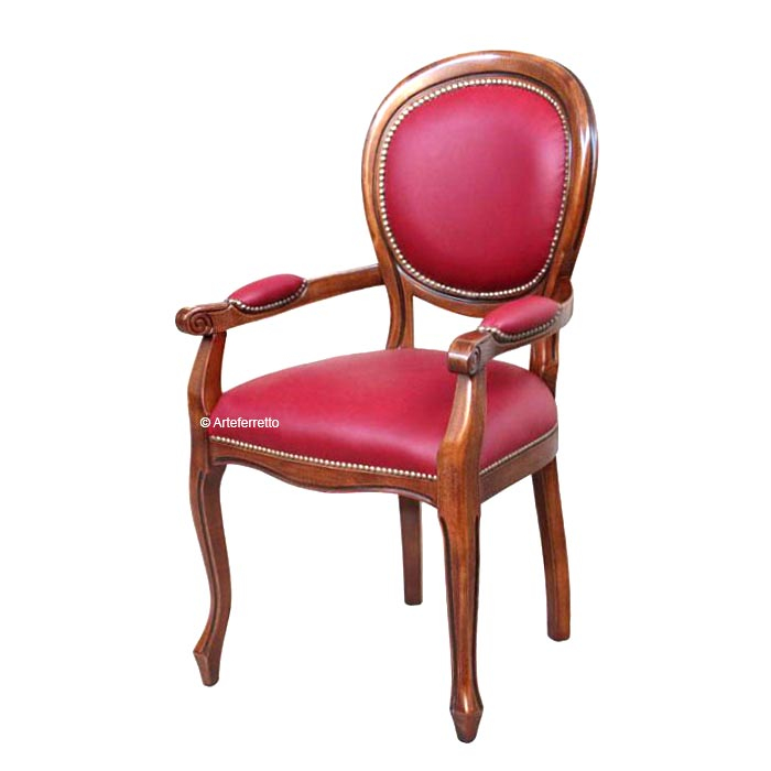 Sedia con braccioli imbottiti che la rende adatta anche come poltroncina per un scrittoio o scrivania.