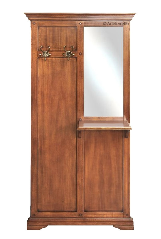 È caratterizzato da un grande specchio con utile mensolina svuota tasche e un pannello dotato di 2 appendiabiti dalla forma stilizzata in perfetta armonia con la struttura di tipo classico del mobile.