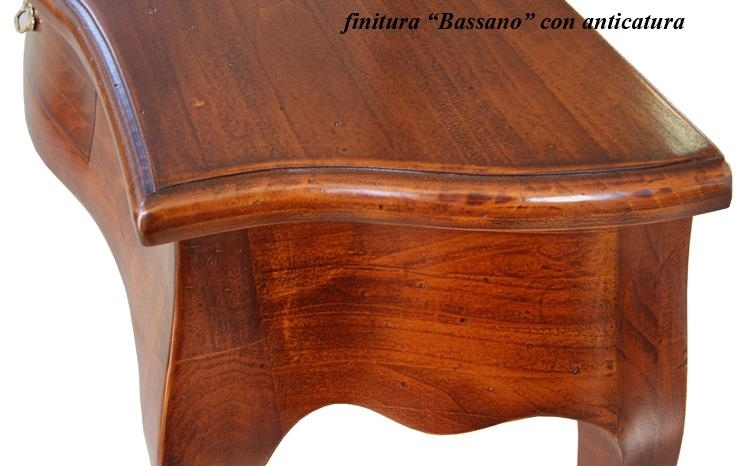 Al cassetto centrale, anch'esso sagomato, viene applicata una maniglia che conferma l'alta qualità e la linea del mobile.