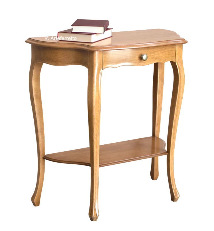 Un discreto cassettino dona utilità a questa raffinata silhouette.