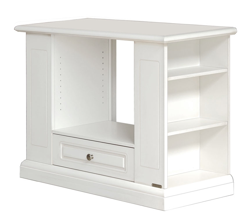 Questo modello è dotato di un capientissimo cassetto (larghezza di 50 cm e altezza di 13,5) che offre la grande comodità di uno spazio ove riporre una grande quantità di oggetti. La forma sobria ed elegante non deve far passare in secondo piano l'estrema robustezza della struttura di questo funzionale Porta Tv.