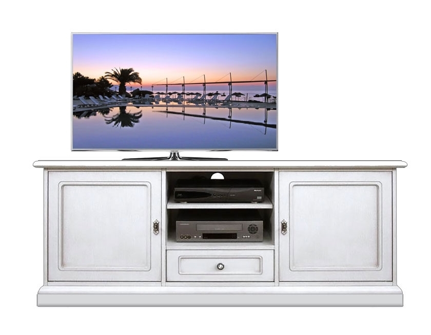 In questo mobile porta tv in stile, l'equilibrio delle lavorazioni rende particolarmente apprezzabile la funzionale struttura di un porta tv estremamente versatile e capiente.