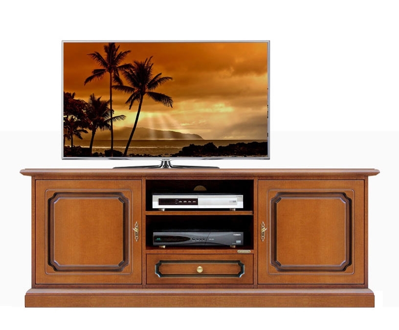 Classico e solido mobile Porta TV basso, forma classica compatta, capienza massima assicurata da due vani chiusi da antine pantografate in disegno classico.