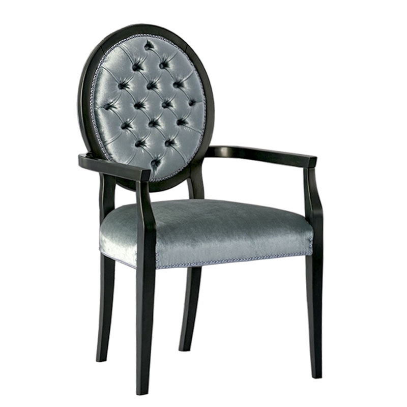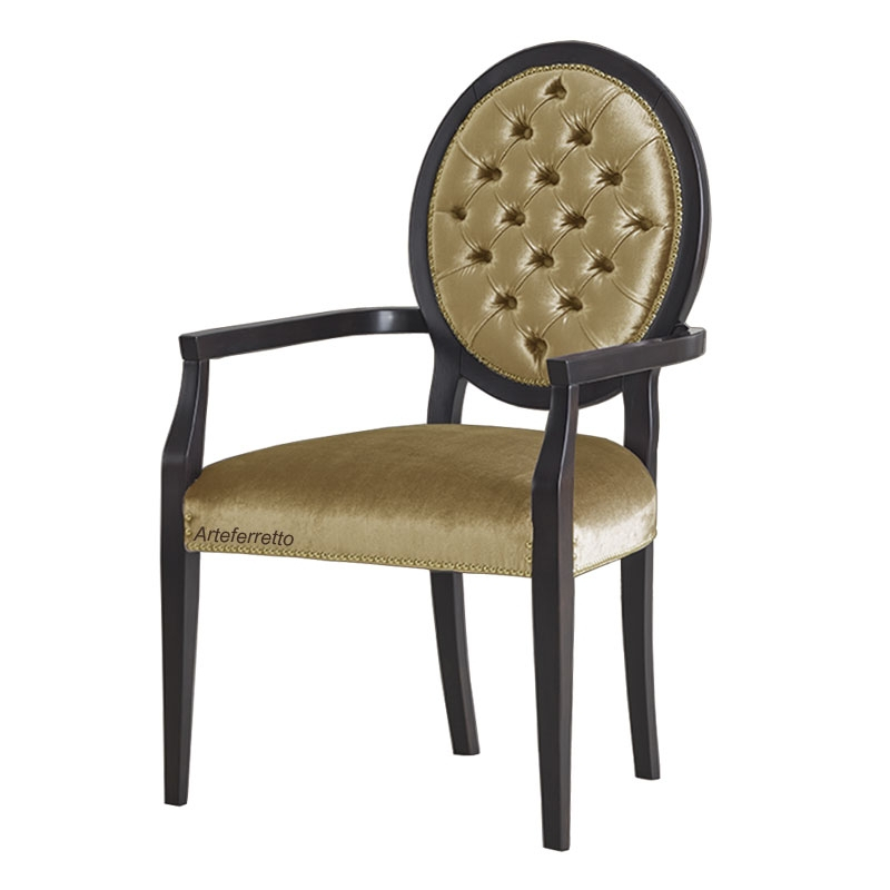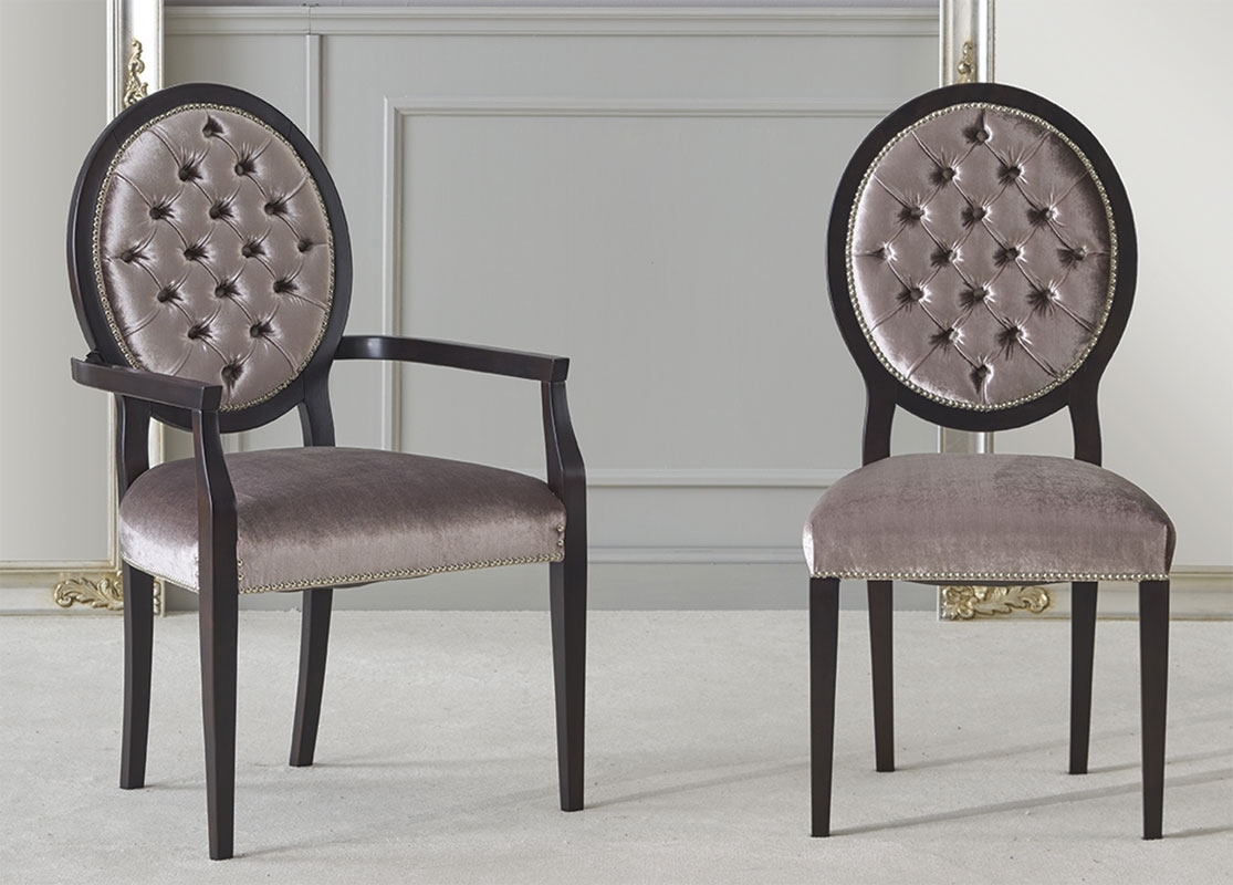 Elemento caratteristico è la splendida lavorazione capitonné che compare sullo schienale ovale regalando un piacevole impatto estetico.
