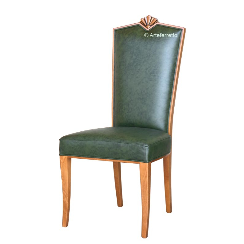 La sua linea semplice ed elegante, si arricchisce di un piccolo, ma prestigioso intaglio, che spunta sulla sommità dello schienale. Un elemento tipicamente classico, che personalizza con stile la sua fisionomia tendenzialmente contemporanea.