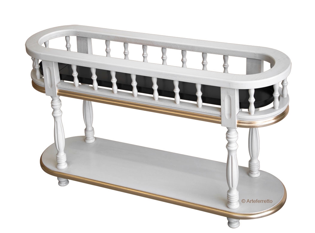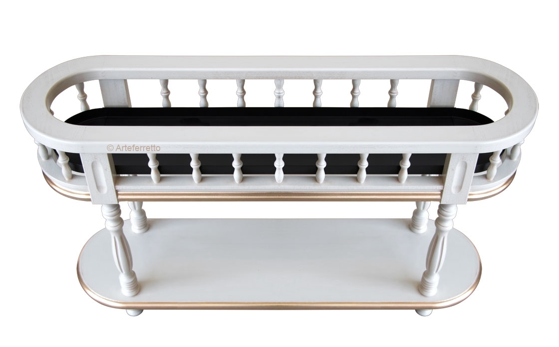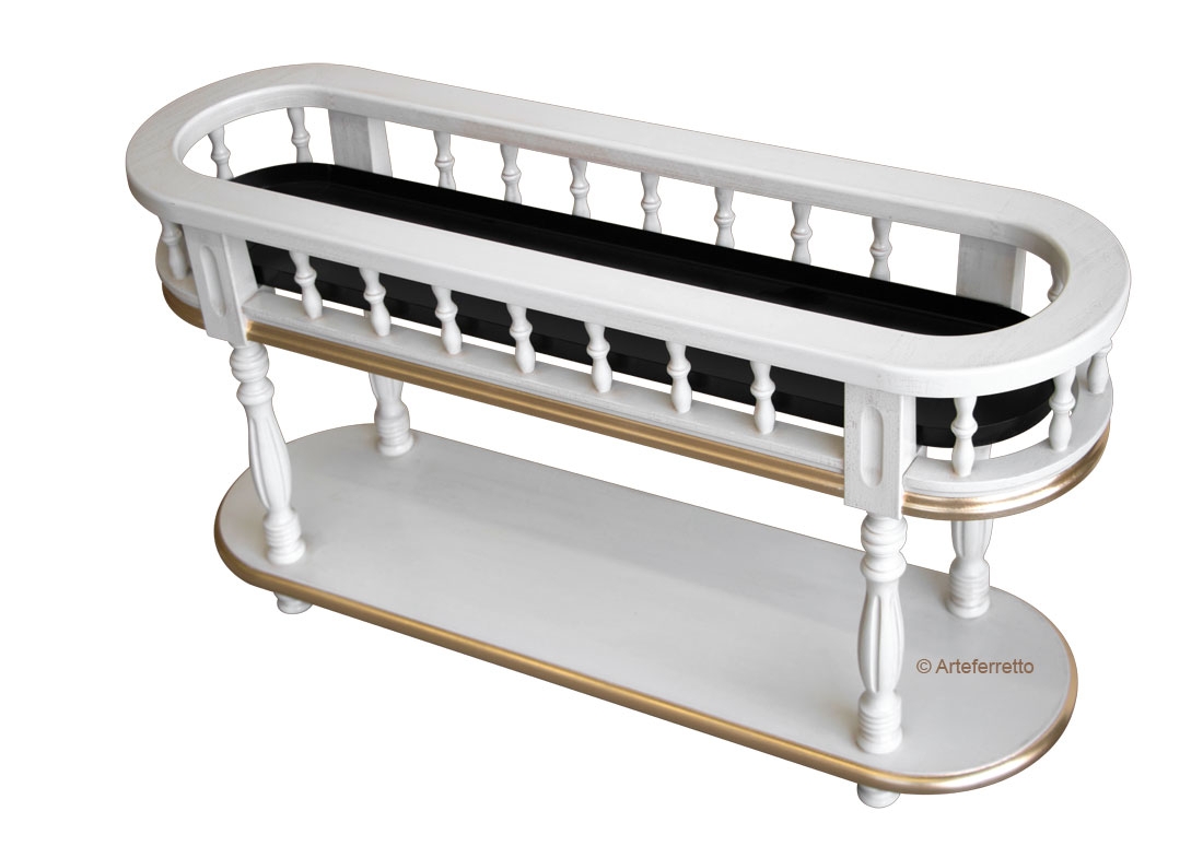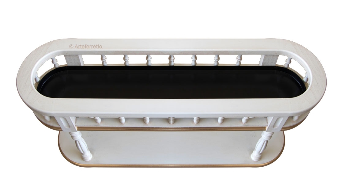 Fioriera stilizzata di gran classe. La sua raffinatezza deriva da un’accurata laccatura che risalta in modo deciso e raffinato con i colori delle piante e fiori che è destinata ad ospitare.