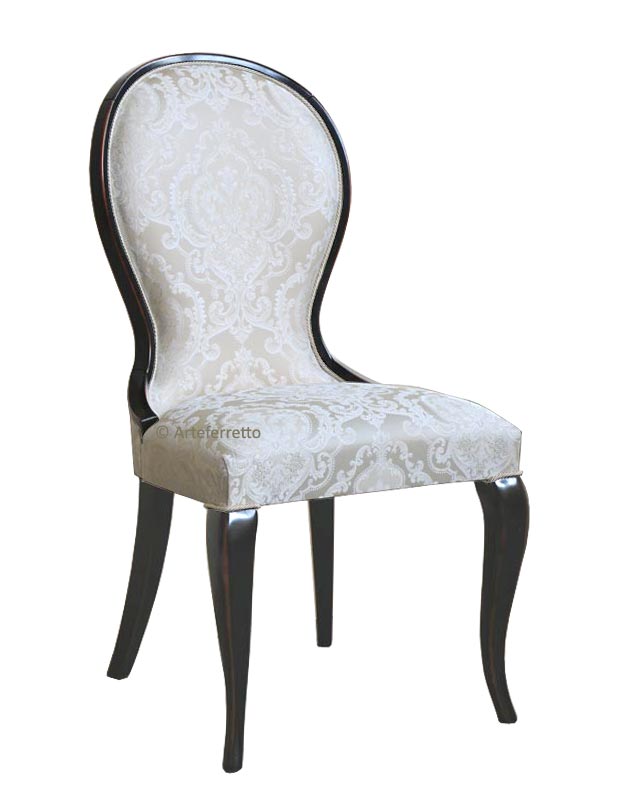 Le gambe anteriori, di maggior spessore, seguono una piacevole curvatura, che entra in armonia con la fisionomia dello schienale.
