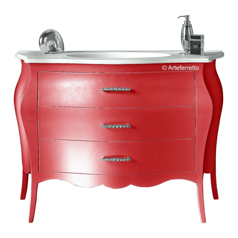 Il bel colore della laccatura esalta le sue linee, integrandosi al candore del mineralmarmo del lavabo.