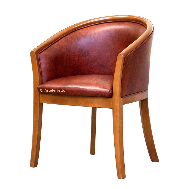 Poltroncina pozzetto classica con linee semplici ma dall'alto valore artigianale dato dalla particolare lavorazione di curvatura della struttura in legno massello di faggio.