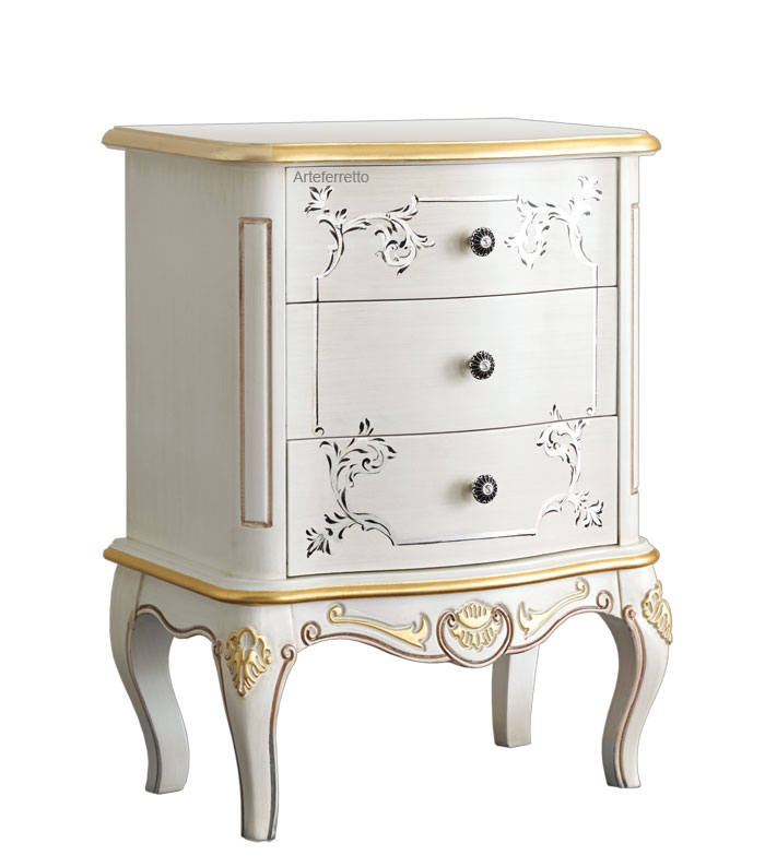Delizioso comodino, molto raffinato e dalla linea classica e luminosa.