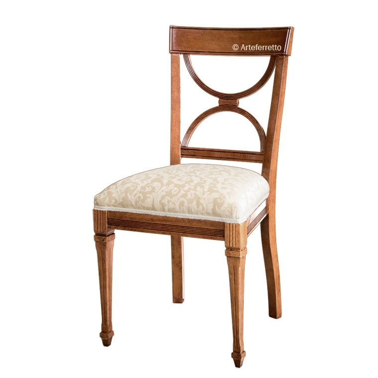 Lo schienale, inoltre, è frutto di una precisa lavorazione che incrocia due semicerchi in un raccordo in legno. Il tutto lavorato su un unico corpo.