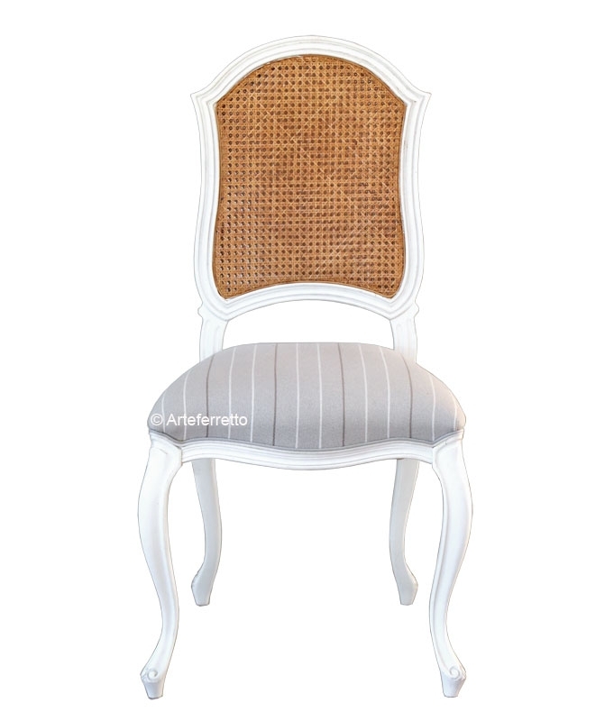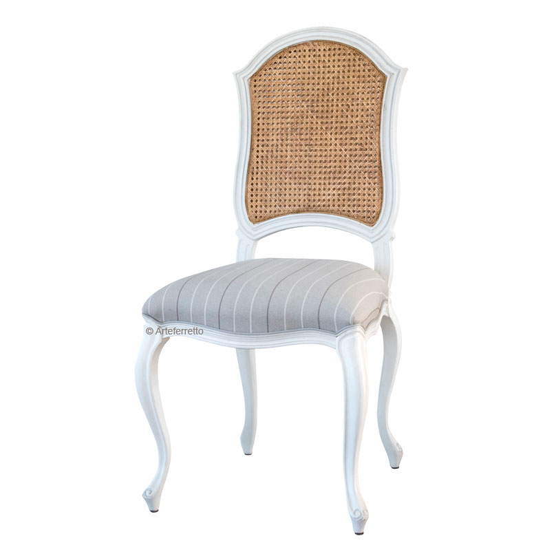 Elegante, raffinata, sinuosa. Ecco la stupenda silhouette di questa particolare sedia che esprime nelle forme della sua struttura in legno tutta l'armonia dell'arte propria di esperti romantici artigiani.