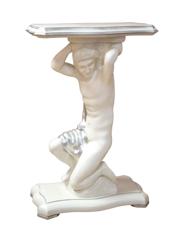 Utilizzabile come porta lampada o porta fiori, brillerà in tutta la sua bellezza. La finitura è data da una laccatura bianca delicatamente patinata per donare ancor maggior spessore ai particolari della scultura. Bordature e dettagli in foglia argento contribuiscono a rendere prezioso ed unico questo splendido oggetto.