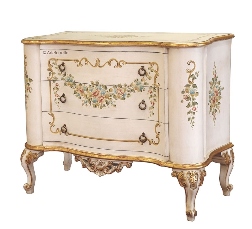 Il mobile presenta come fondo una laccatura applicata a mano, sfumata con una lieve patinatura che mette in risalto le sue belle forme.