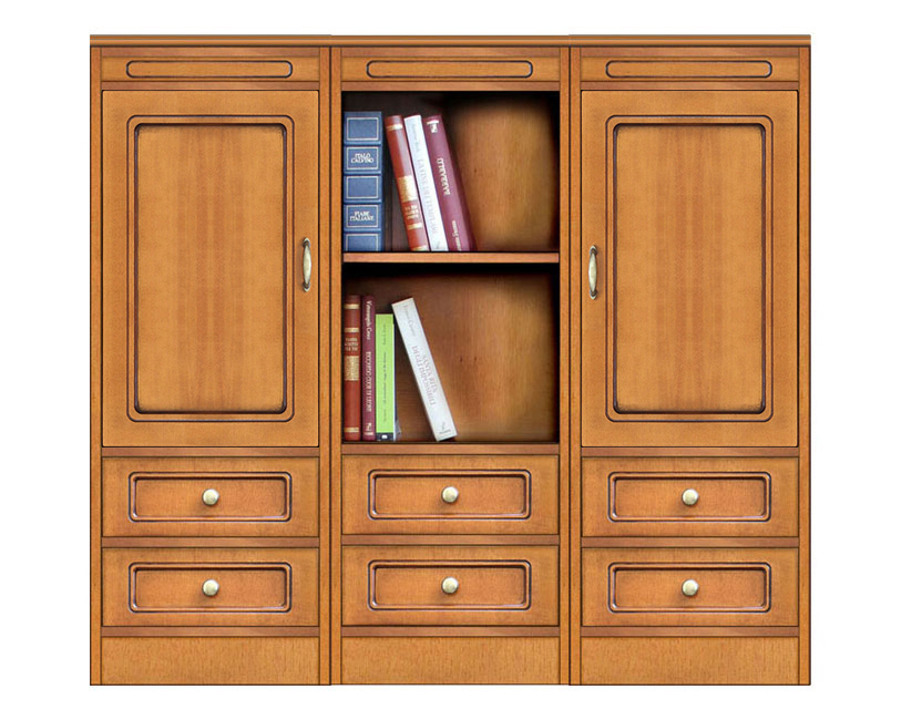 Un importante spazio (altezza del vano di 59 cm) è racchiuso lateralmente da delle eleganti porte mentre centralmente il vano è a giorno per poterne disporre come libreria o per esporre oggetti decorativi. I ripiani in dotazione sono tutti regolabili in altezza.