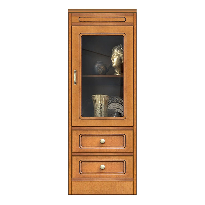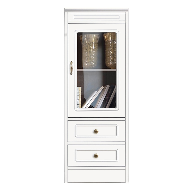 Vetrinetta che presenta uno spazio racchiuso da un’elegante anta con vetro. All’interno, un ripiano regolabile in altezza permette di disporre al meglio dello spazio a disposizione. Nella parte sotto due utili cassetti rendono molto funzionale questo mobile. Questa vetrinetta si dimostra perfetta per ogni ambiente, dal soggiorno allo studio. Grazie alle sue dimensioni riesce ad inserirsi anche in piccoli spazi offendo praticità e stile.