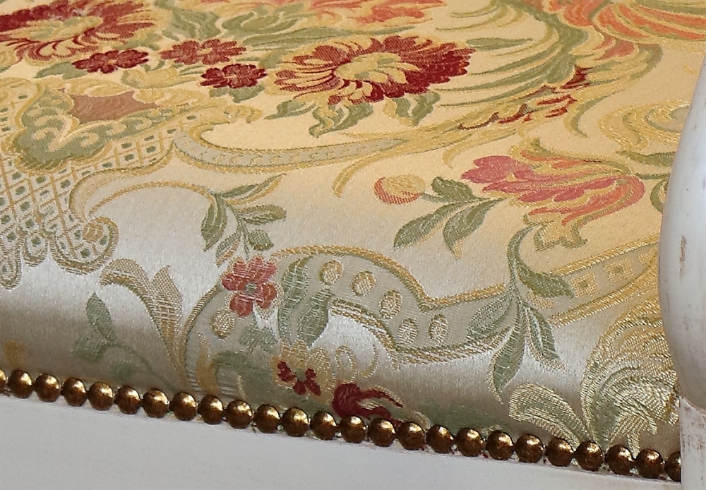 Affascinante poltroncina dall'elaborato telaio in legno.