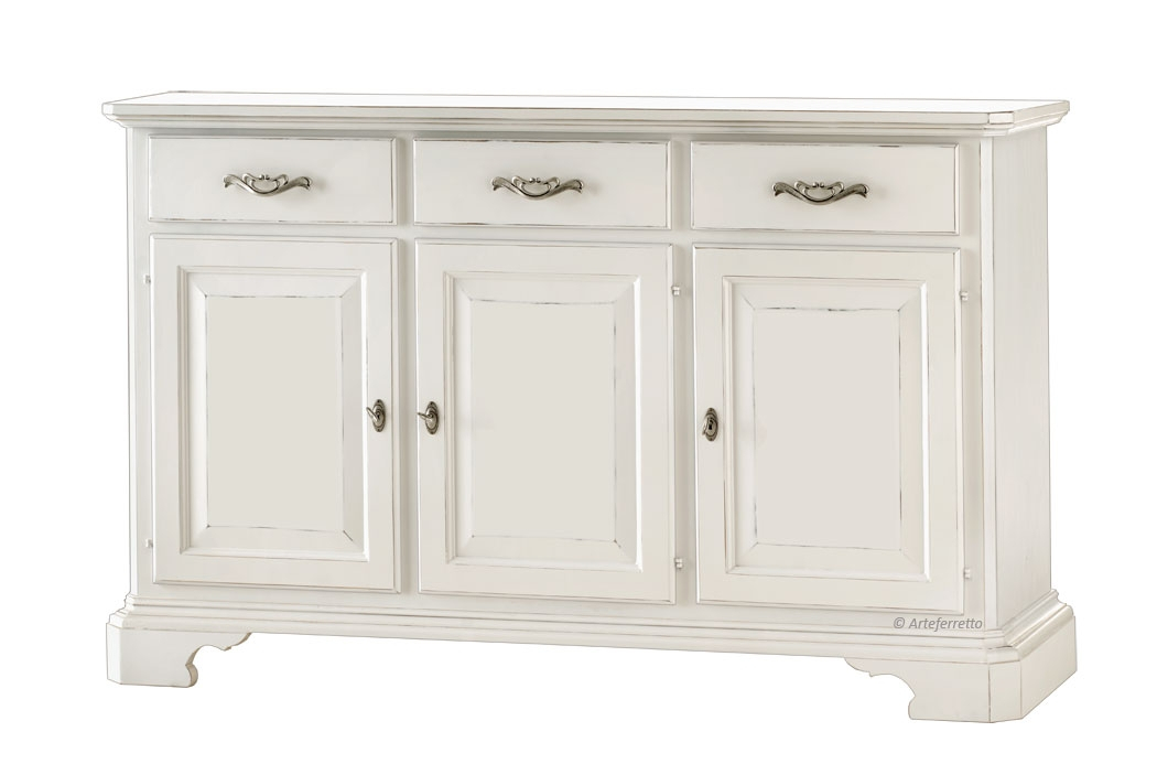 Questo credenzone è un bel mobile tradizionale che si presta benissimo a finiture di tipo classico (tinte ciliegio, noce o bassano) e a finiture laccate, preferibilmente patinate o spigolate.