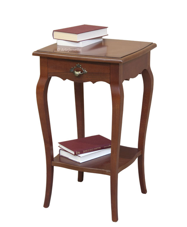 Poco ingombrante, offre tuttavia una buona utilità disponendo di un bel piano d'appoggio e di un utile cassetto appena sotto il top.