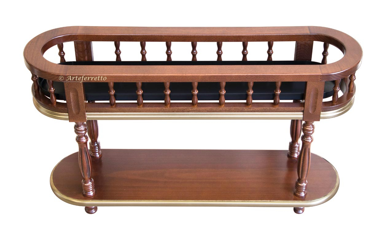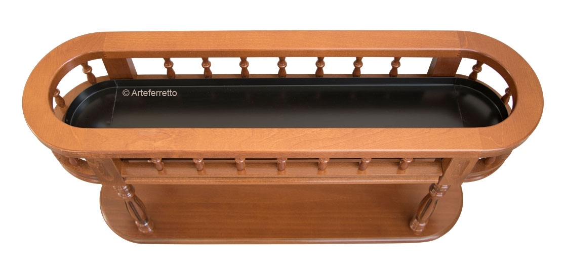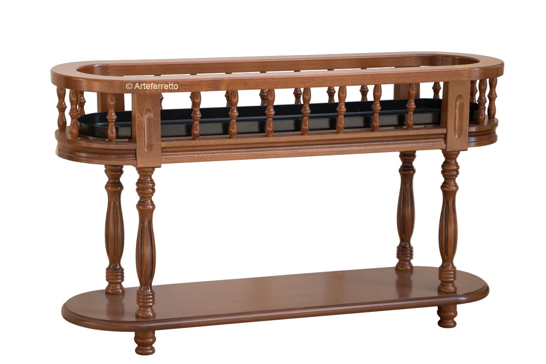 Bella fioriera con due piani ovali e gambe con elegante tornitura.