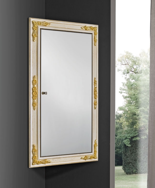 Splendida e raffinata specchiera contenitore ad angolo, soluzione ideale per valorizzare nel migliore dei modi un angolo di qualsiasi ambiente della vostra casa.