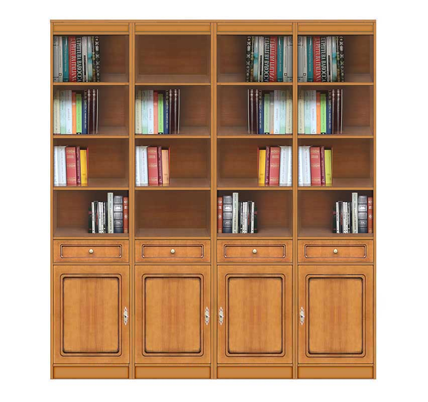 La parte inferiore è racchiusa da eleganti ante a lavorazione moderatamente stilizzata. Subito sopra, una fila di cassetti offre una grande utilità.