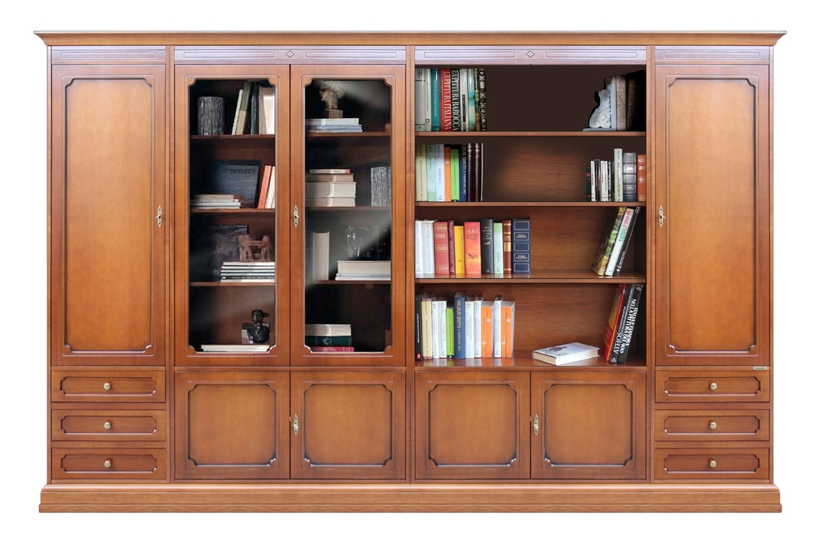 Centralmente, i doppi vani sono rispettivamente racchiusi da ante con vetro il primo e a giorno il secondo.
