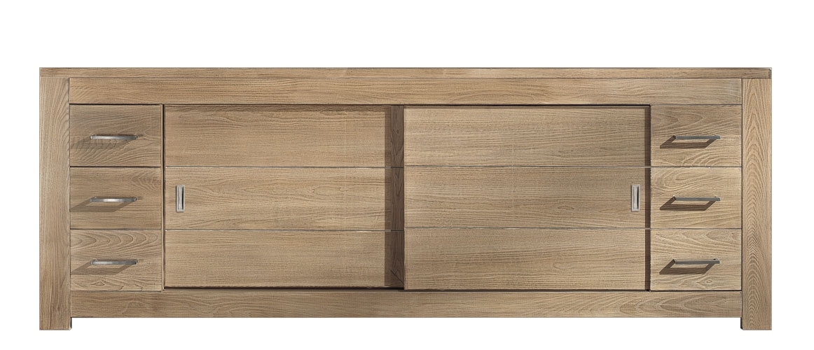 Credenzone in vero legno di frassino con finitura spazzolata per dare il massimo rilievo alla bellezza delle venature.