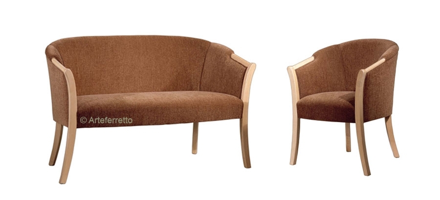 Il suo telaio in legno massello di faggio è lavorato con accurate torniture ne fanno risaltare l'estrema bellezza. L'imbottitura e la tappezzeria sono realizzate artigianalmente con l'utilizzo di materiali di prim'ordine per assicurare una indeformabilità duratura senza rinunciare all'indispensabile comodità.