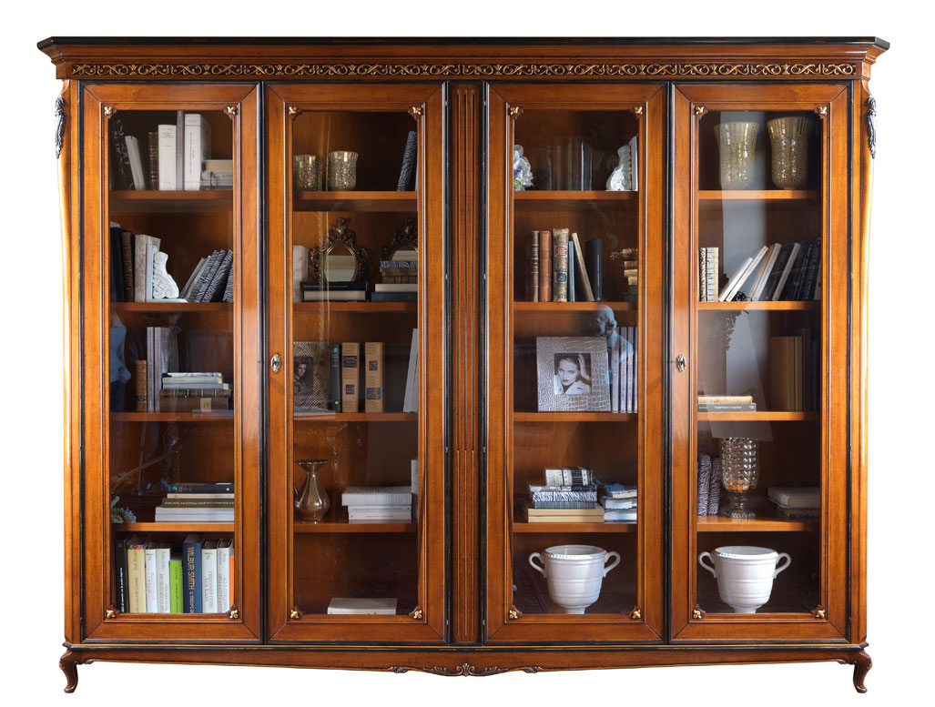 Deliziosa libreria 4 ante di grande stile. La sua linea si rifà ai mobili del più rinomato stile classico del 700 veneziano.