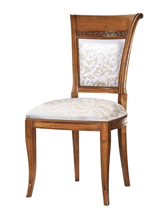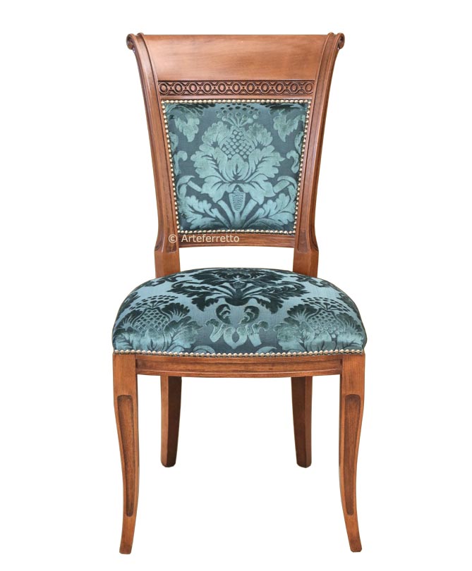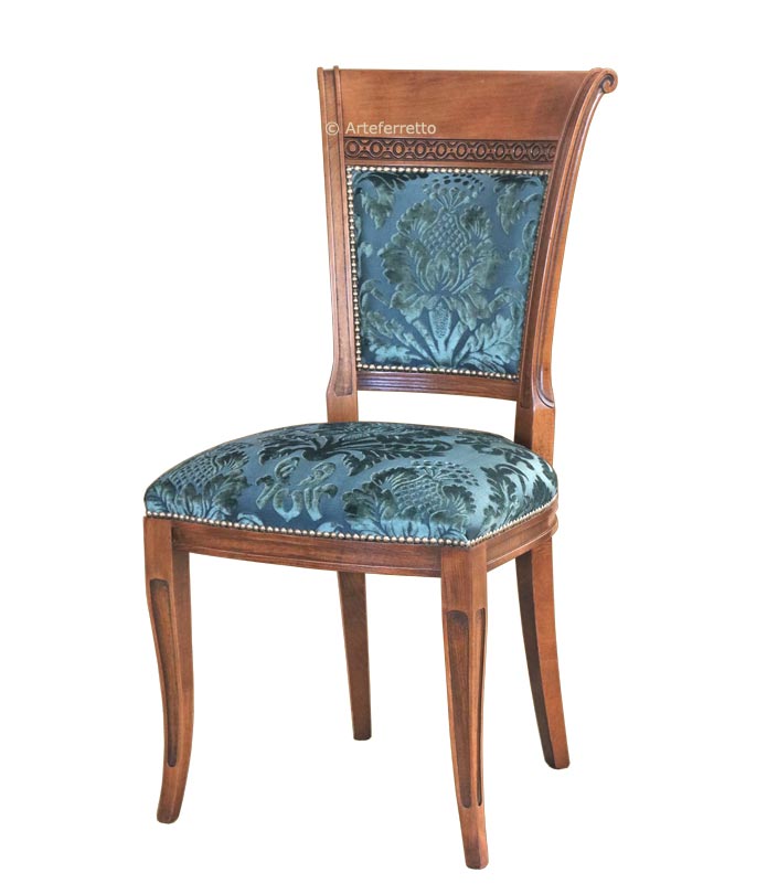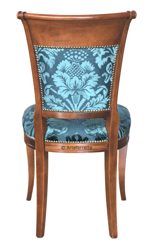 Sedia classic con struttura in legno, seduta e schienale imbottiti e tappezzati a mano da esperti artigiani specializzati nella lavorazione di mobili in stile.